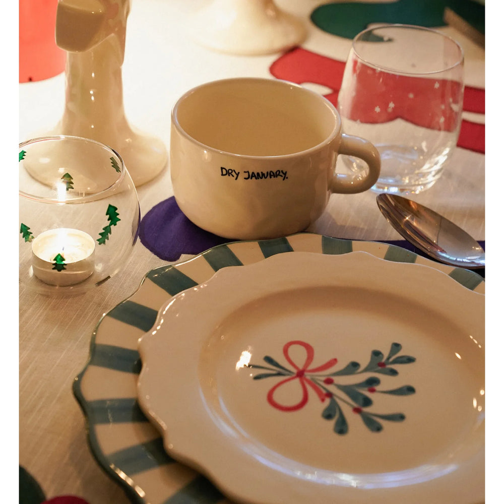 Ručno oslikana keramička šalica, idealna za omiljeni cappuccino tijekom “Dry January” ili opuštenih jutarnjih rituala. Dizajn tipičan za Anna + Nina - karakterističan, zabavan i savršen za početak godine bez žurbe.