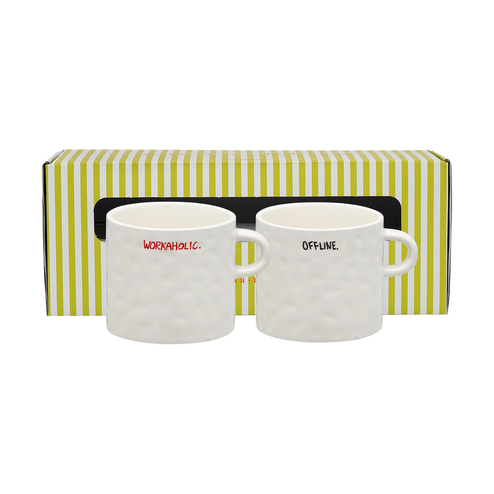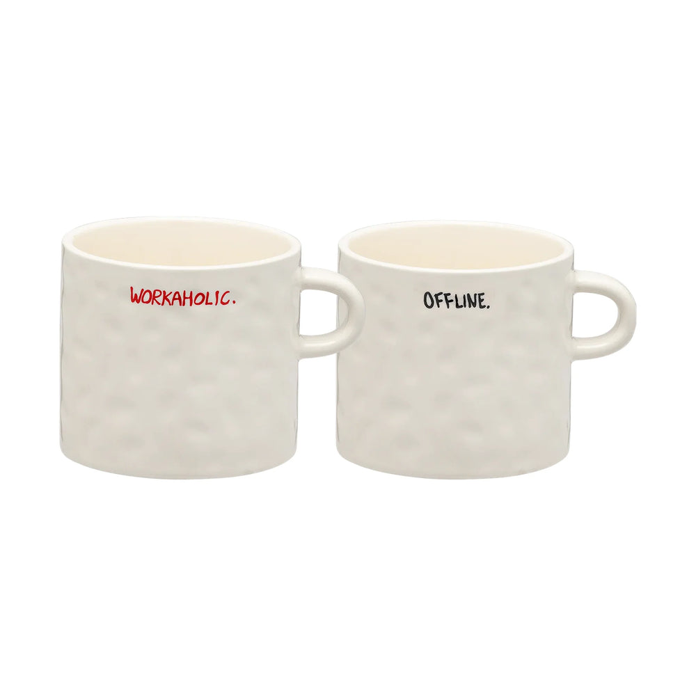 Keramički set od dvije ručno oslikane šalice s motivom ravnoteže između rada i odmora. Idealne za svakodnevnu kavu ili kao promišljen poklon kolegi.