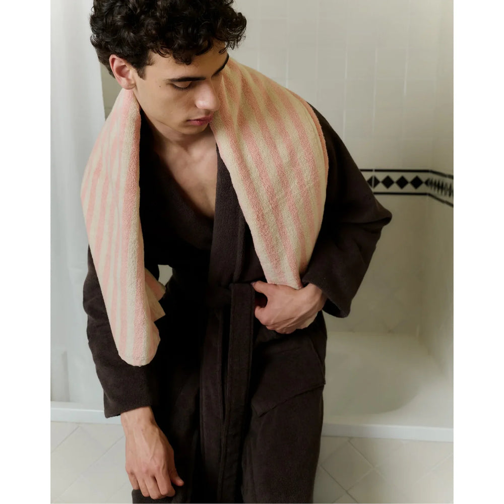 Care club: Za maksimalnu mekoću i dugotrajnost ogrtača preporučujemo da ga operete prije prve uporabe. Perite na 40 °C s rubljem sličnih boja. Sušite u sušilici na niskoj temperaturi i objesite da se osuši kako biste očuvali boju i vlakna. Ako se pojave duže niti, nemojte ih izvlačiti - jednostavno ih pažljivo odrežite škarama. Niti su učvršćene s unutarnje strane i neće se rasparati nakon rezanja.