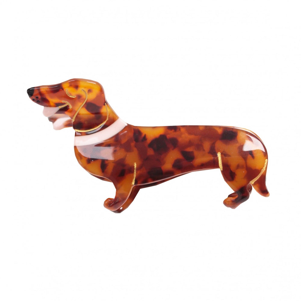 Mali jazavčar držat će vašu frizuru besprijekornom i neodoljivom! Ova kopča je originalna, šašava i savršene veličine za podizanje kose. Napravljena je od recikliranog i biorazgradivog (ekološki prihvatljivog) celuloznog acetata.