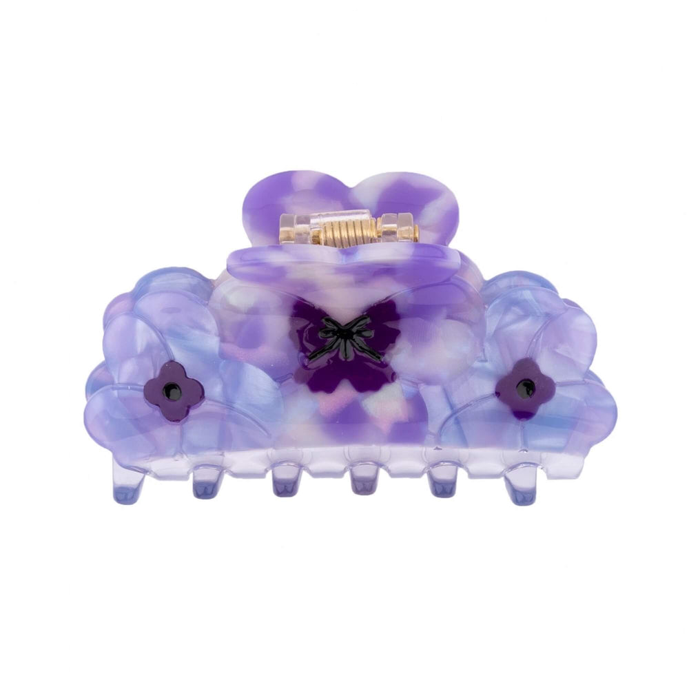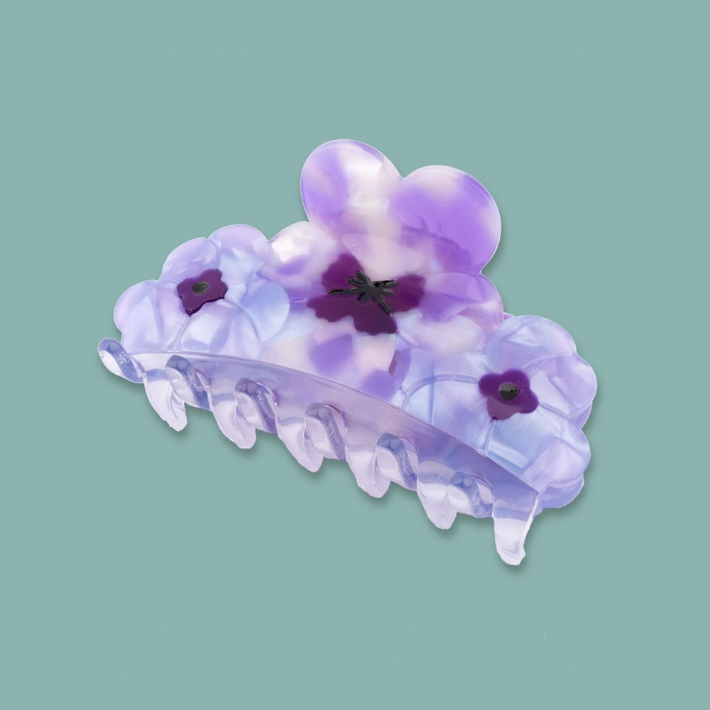 Slatka kopča za kosu s tri prekrasne ljubičaste biserne maćuhice za spektakularnu punđu.