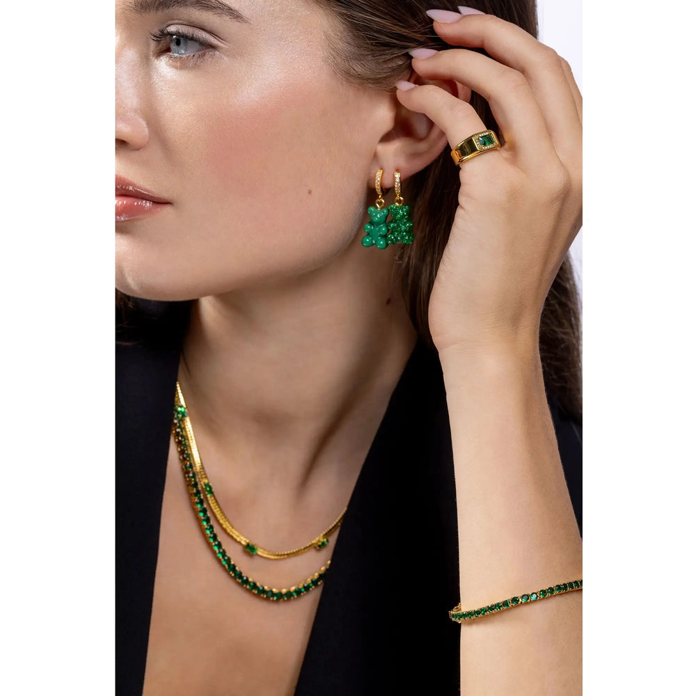 • Materijal: 18k pozlaćeni mesing, epoxy smola i kubični cirkonij