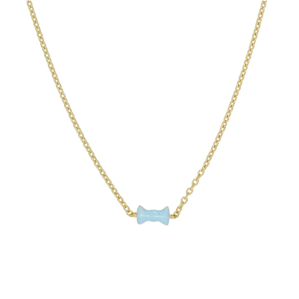 Minimalistička ogrlica s detaljem svijetloplave mašnice koja odiše ženstvenošću. Dio kolekcije Little Bowtie koja uključuje ogrlicu, naušnice, narukvicu i prsten. Savršena za kombiniranje s ostalim komadima iz kolekcije ili kao elegantan samostalan dodatak. Idealan poklon za prijateljstvo, Valentinovo, rođendan, krizmu ili Majčin dan.