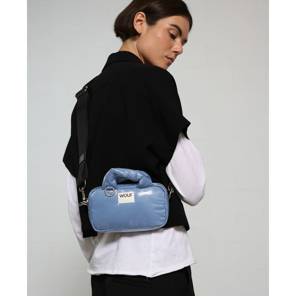 Kompaktna torba s elegantnim sjajnim završetkom, savršena za nošenje mobitela i sitnih potrepština. Praktična, lagana i prilagodljiva za nošenje u ruci ili preko tijela.
