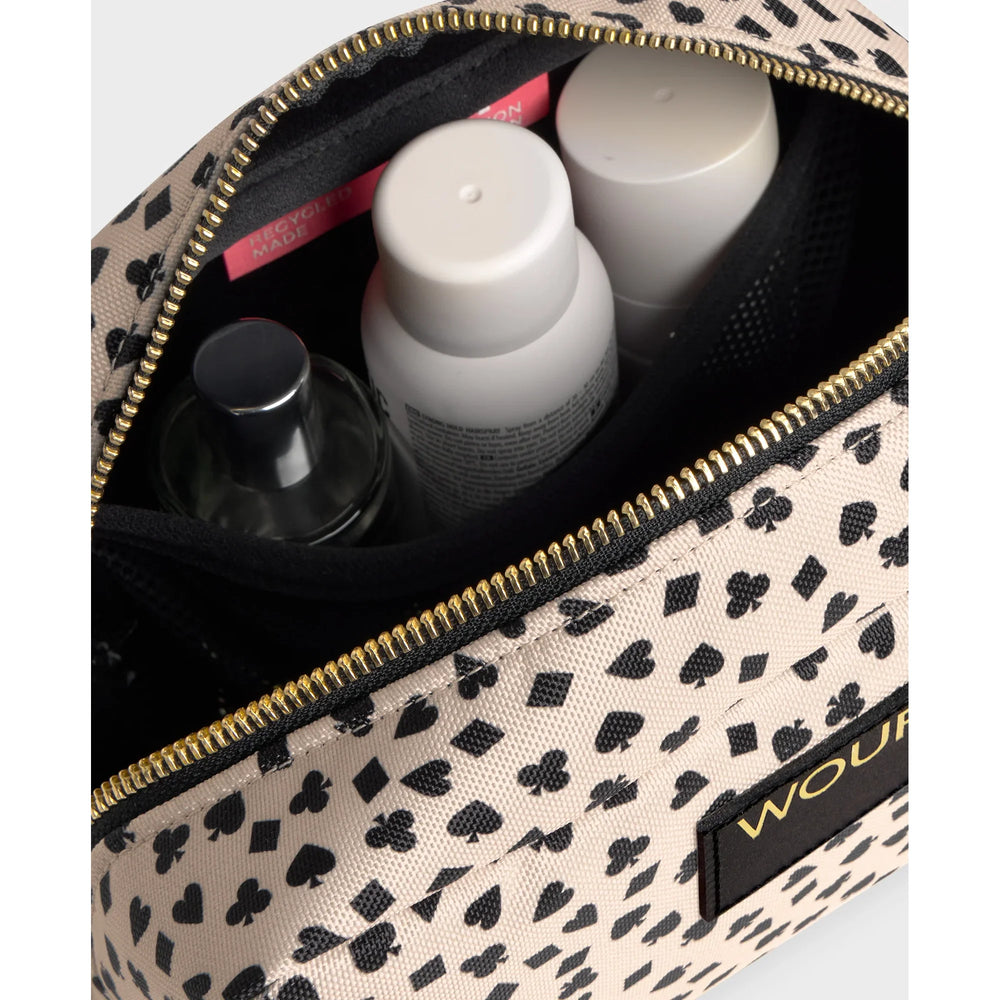 Toaletna torbica izrađena od recikliranih materijala s vodoodbojnom završnom obradom. Ima jedno glavno spremište i unutarnji džep, idealna je za organizaciju i nošenje kozmetike i osnovnih toaletnih potrepština.