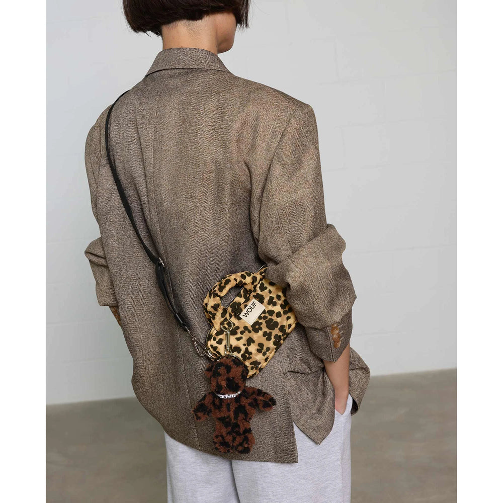 Detalji: meki privjesak u obliku medvjedića s prstenom i kopčom za jednostavno pričvršćivanje na torbu ili ključeve.